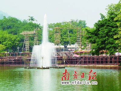 近日,记者从第六届新会圭峰庙会主办单位了解到,位于圭峰玉湖广场的超大型水上舞台已搭建。舞台左右两侧的8个超大型鼓也已安装完成。据相关负责人介绍,今年的文化艺术彩灯博览会将于本周六亮灯,并由此拉开牛年“圭峰之春”文化庙会的序幕。