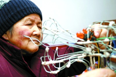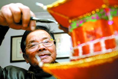 为参加今年元宵节在龙华举行的长三角地区非物质文化保护项目“迎世博”扎灯大赛,老朱从春节前就忙开了。整个节日中老朱就没出门过,家里的客厅也成了一个“扎灯大作坊”,来窜们的亲戚也帮老朱干起穿钢丝、剪布料等活。