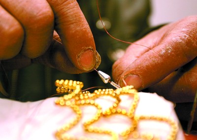 图片说明:龙船身上的鳞片是用小珠子一颗颗串成的