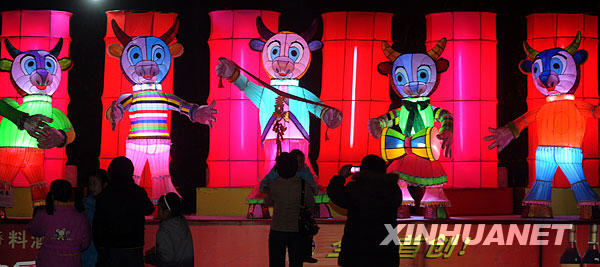 2月4日,市民们在观赏花灯“五牛闹新春”。