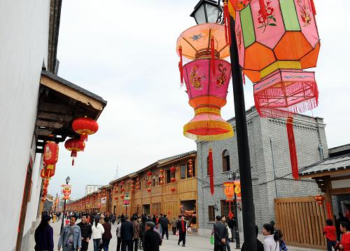 2月4日,福州市民在南后街游玩、赏灯。元宵佳节临近,福州传统花灯一条街——南后街被各色花灯装扮一新,近百家花灯商铺生意日益红火,市民不仅可以在这里购买到喜爱的花灯,还可以观赏传统花灯的制作过程。