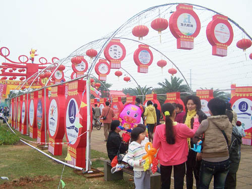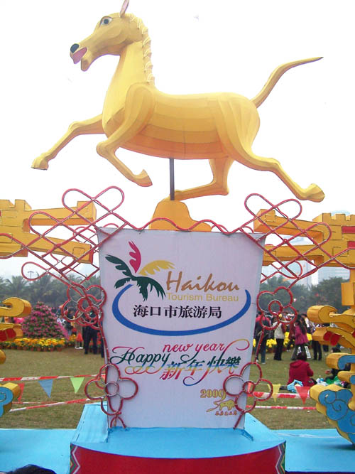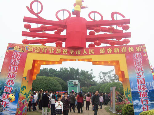 为让游客和市民度过一个祥和、欢乐的春节,海口市旅游行业捐款35万多元举办独立的海口市旅游行业花灯展。