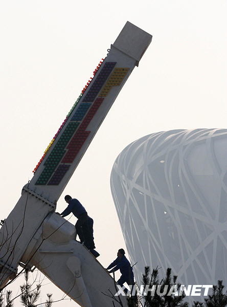 1月19日,工人们在位于国家体育场“鸟巢”东北侧的嘉年华主题公园内安装游乐设施。