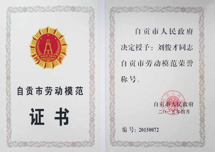 自贡市劳动模范证书