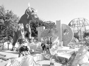 “辉煌30年·2009厦门市元宵灯会”的施工工作正紧锣密鼓地进行。昨日,记者在白鹭洲施工现场看到,一些大型主题灯已初露雄姿。