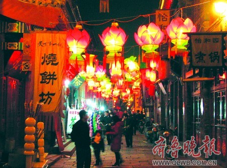 临近元宵节,周村著名的古商街数千盏花灯齐放,迎接元宵佳节。不少游客漫步其中,不由赞叹古商街的迷人新貌。