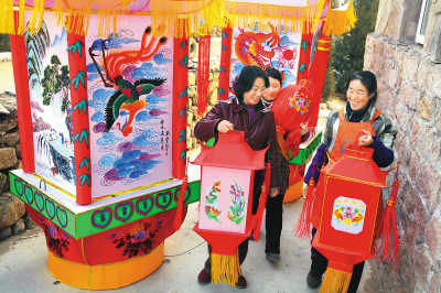 2月4日,在北京市怀柔区九渡河镇红庙村,村民们纷纷扎制彩灯迎元宵。